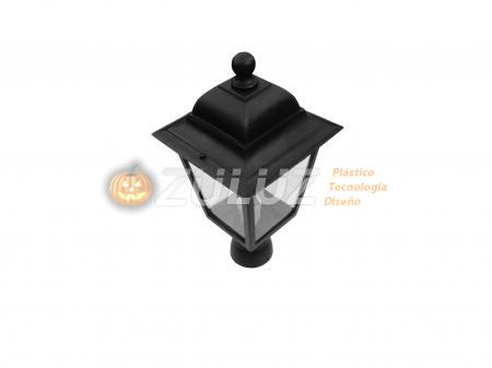 Farol colonial plástico cuadrado para colocación en caño diámetro 2” (50mm).
